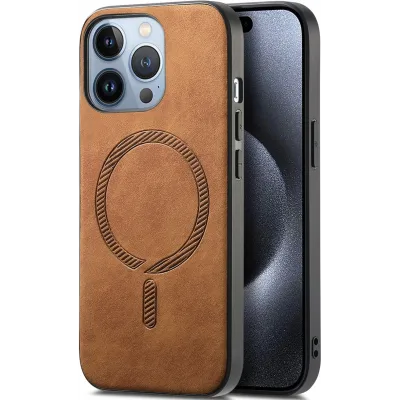 • Phonesta Retro Vegan Leder MagSafe Back Cover Hülle für Apple iPhone 16 Pro - Braun
