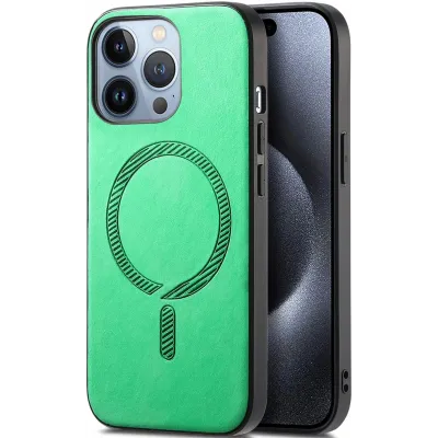 • Phonesta Retro Vegan Leder MagSafe Back Cover Hülle für Apple iPhone 16 Pro - Grün
