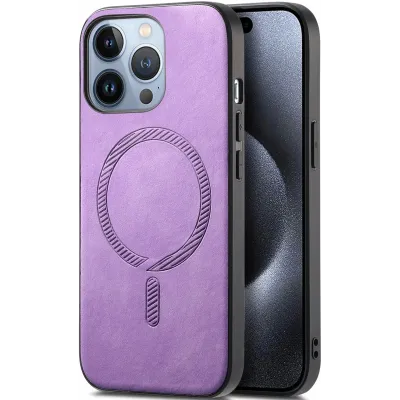 • Phonesta Retro Vegan Leder MagSafe Back Cover Hülle für Apple iPhone 16 Pro - Lila