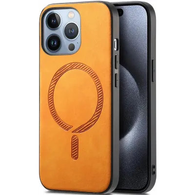 • Phonesta Retro Vegan Leder MagSafe Back Cover Hülle für Apple iPhone 16 Pro Max - Orange