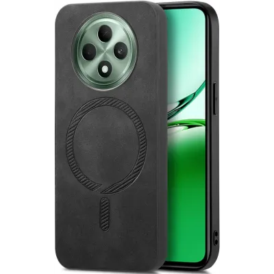Phonesta Retro Vegan Leder MagSafe Back Cover Hülle für Oppo Reno12 F/Reno12 FS - Schwarz
