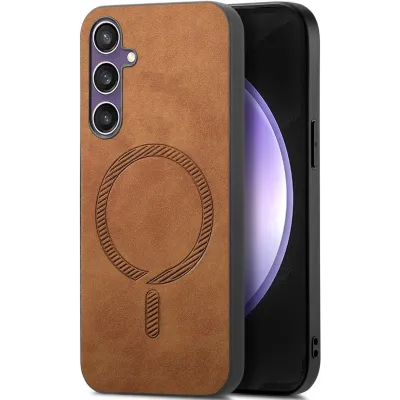 HandyhüllenSamsung Galaxy HüllenSamsung Galaxy S24 FE HüllenPhonesta Retro Vegan Leder MagSafe Back Cover Hülle für Samsung Galaxy S24 FE - Braun