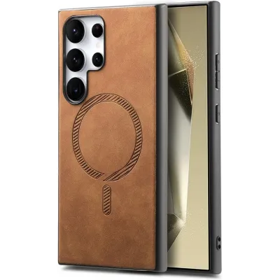 HandyhüllenSamsung Galaxy HüllenSamsung Galaxy S25 Ultra HüllenPhonesta Retro Vegan Leder MagSafe Back Cover Hülle für Samsung Galaxy S25 Ultra - Braun
