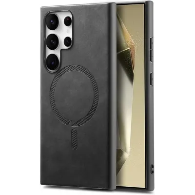 HandyhüllenSamsung Galaxy HüllenSamsung Galaxy S25 Ultra HüllenPhonesta Retro Vegan Leder MagSafe Back Cover Hülle für Samsung Galaxy S25 Ultra - Schwarz