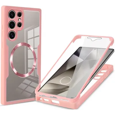 • Phonesta Slim Protect 360 Vollschutzhülle Displayschutzfolie und MagSafe für Samsung Galaxy S24 Ultra - Rosa