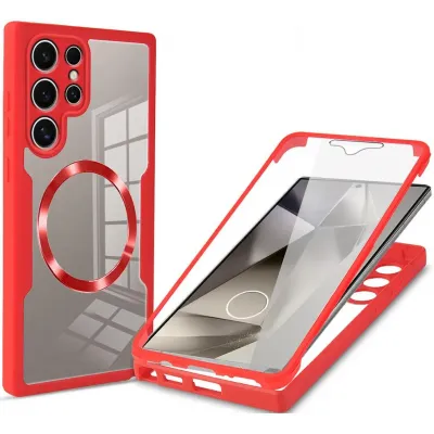 • Phonesta Slim Protect 360 Vollschutzhülle Displayschutzfolie und MagSafe für Samsung Galaxy S24 Ultra - Rot