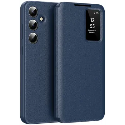 • Phonesta Smart Window Book Wallet Klapphülle für Samsung Galaxy S24 FE - Dunkelblau