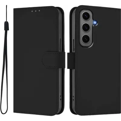 Phonesta Leder Vertical Flip Book Wallet Klapphülle für Samsung Galaxy S25 Plus/S24 Plus - Schwarz