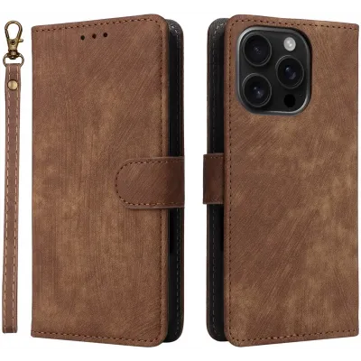 Phonesta Vintage Skin Book Wallet Klapphülle für Apple iPhone 16 Pro Max - Braun