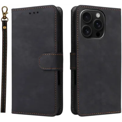 Phonesta Vintage Skin Book Wallet Klapphülle für Apple iPhone 16 Pro - Schwarz