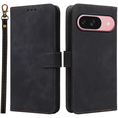 • Phonesta Vintage Skin Book Wallet Klapphülle für Google Pixel 9 / 9 Pro - Schwarz