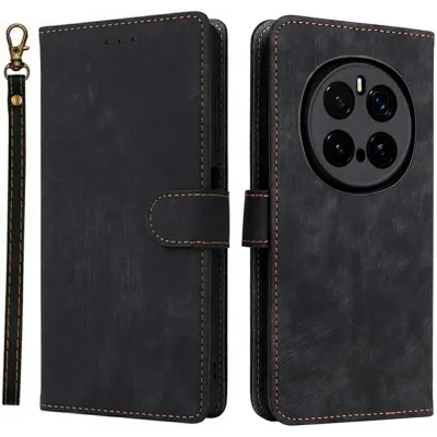 Phonesta Vintage Skin Book Wallet Klapphülle für HONOR Magic7 Pro - Schwarz