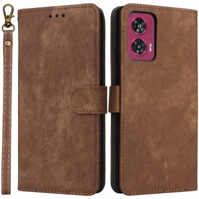 Phonesta Vintage Skin Book Wallet Klapphülle für Motorola Edge 50 Fusion - Braun