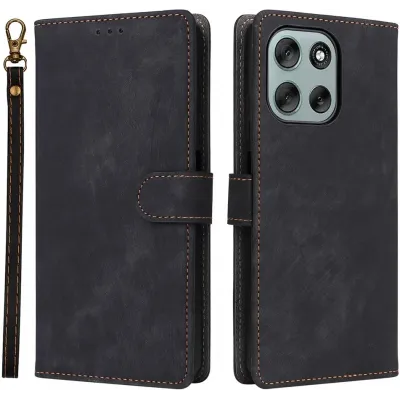 • Phonesta Vintage Skin Book Wallet Klapphülle für Motorola Moto G56 - Schwarz