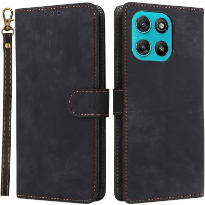 Phonesta Vintage Skin Book Wallet Klapphülle für Motorola Moto G57 Power - Schwarz