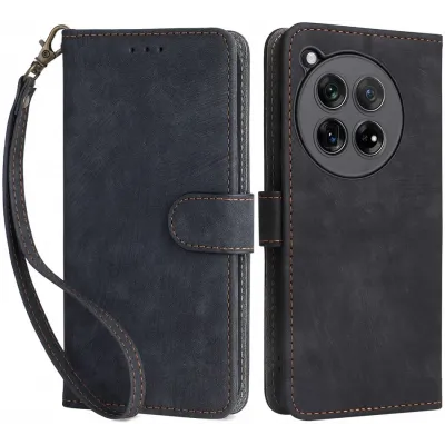 • Phonesta Vintage Skin Book Wallet Klapphülle für OnePlus 12 - Schwarz