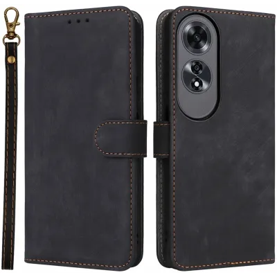 • Phonesta Vintage Skin Book Wallet Klapphülle für Oppo A60 4G - Schwarz