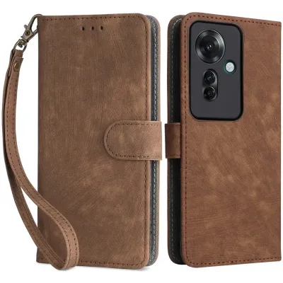 • Phonesta Vintage Skin Book Wallet Klapphülle für Oppo Reno11 F 5G - Braun
