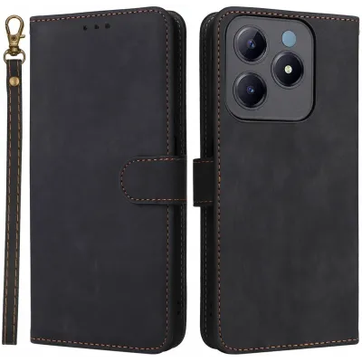 • Phonesta Vintage Skin Book Wallet Klapphülle für Realme C63/C61 / Note 60 - Schwarz