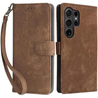 • Phonesta Vintage Skin Book Wallet Klapphülle für Samsung Galaxy S24 Ultra - Braun