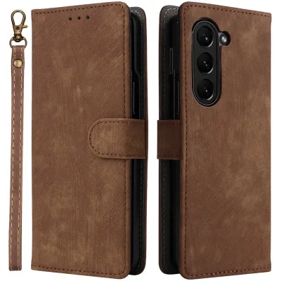• Phonesta Vintage Skin Book Wallet Klapphülle für Samsung Galaxy Z Fold 6 - Braun