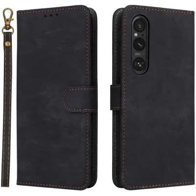 Phonesta Vintage Skin Book Wallet Klapphülle für Sony Xperia 1 VI - Schwarz