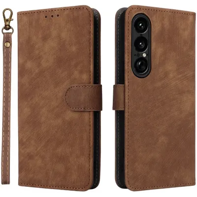 Phonesta Vintage Skin Book Wallet Klapphülle für Sony Xperia 1 VII - Braun