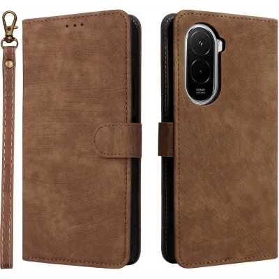 Phonesta Vintage Skin Book Wallet Klapphülle für Xiaomi Poco M7 - Braun